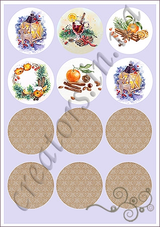Эта распечатка подходит для декорирования круглых новогодних игрушек.