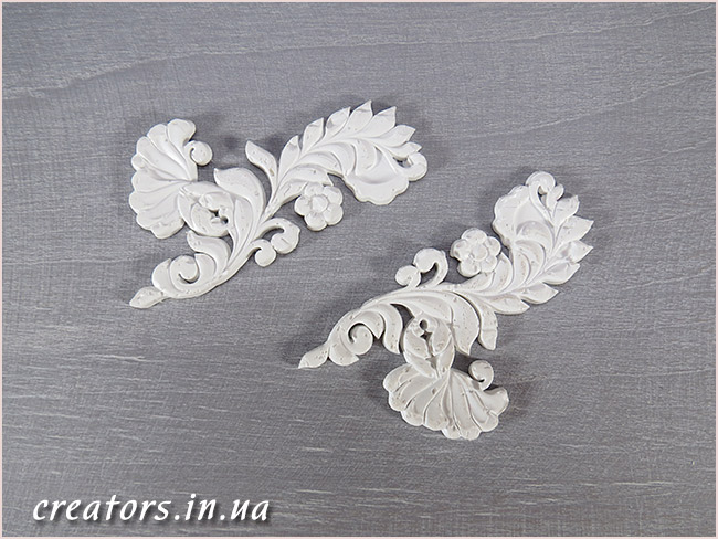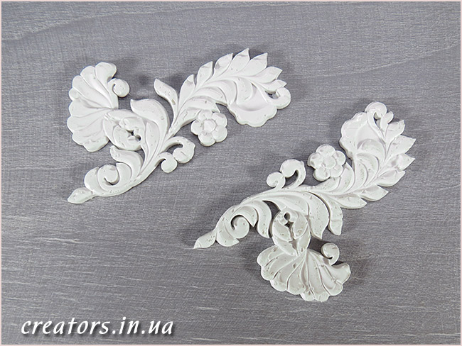 ПОЛИМЕРНЫЕ ДЕКОРАТИВНЫЕ ЭЛЕМЕНТЫ очень удобны в работе. Их можно наклеивать на любые поверхности. Они хорошо красятся акриловыми красками, тонируются битумами и патиной. Полимерные заготовки клеятся на ПВА или любой другой клей. При этом, перед началом работы, элементы рекомендуется обезжирить.