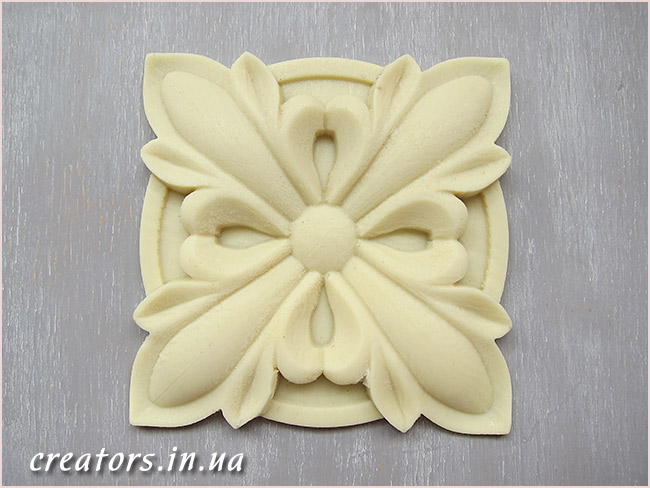 - Перед использованием, декоративные элементы больших размеров, желательно прогреть с помощью фена. Это позволит избежать щелей между поверхностью и декором. Также этот метод походит для применения декора на округлых поверхностях.