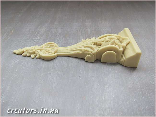 - Перед использованием, декоративные элементы больших размеров, желательно прогреть с помощью фена. Это позволит избежать щелей между поверхностью и декором. Также этот метод походит для применения декора на округлых поверхностях.